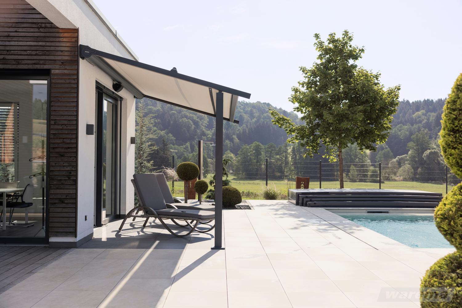 - Wetterfester und regensicherer Stoff für ein angenehmes Klima unter der Markise